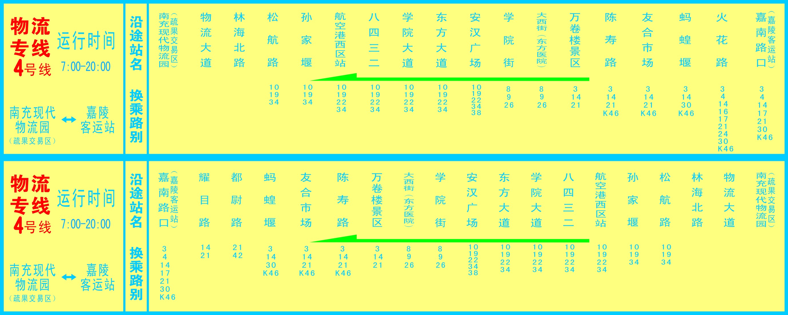 物流專線4號線:南充現(xiàn)代物流園----嘉陵客運(yùn)站