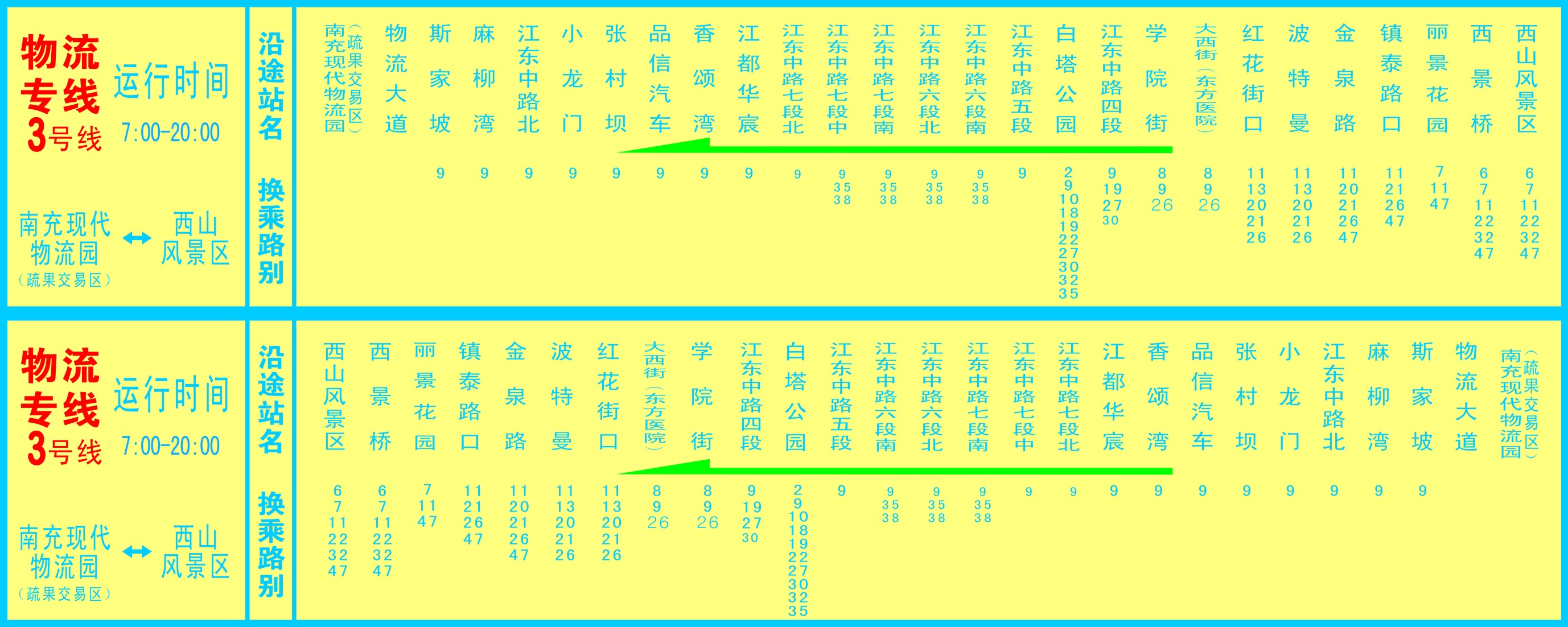 物流專(zhuān)線3號(hào)線:南充現(xiàn)代物流園----西山風(fēng)景區(qū)