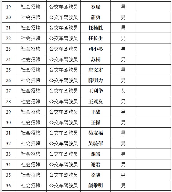 2025年第一期招聘公交車駕駛員擬錄用人員名單公示